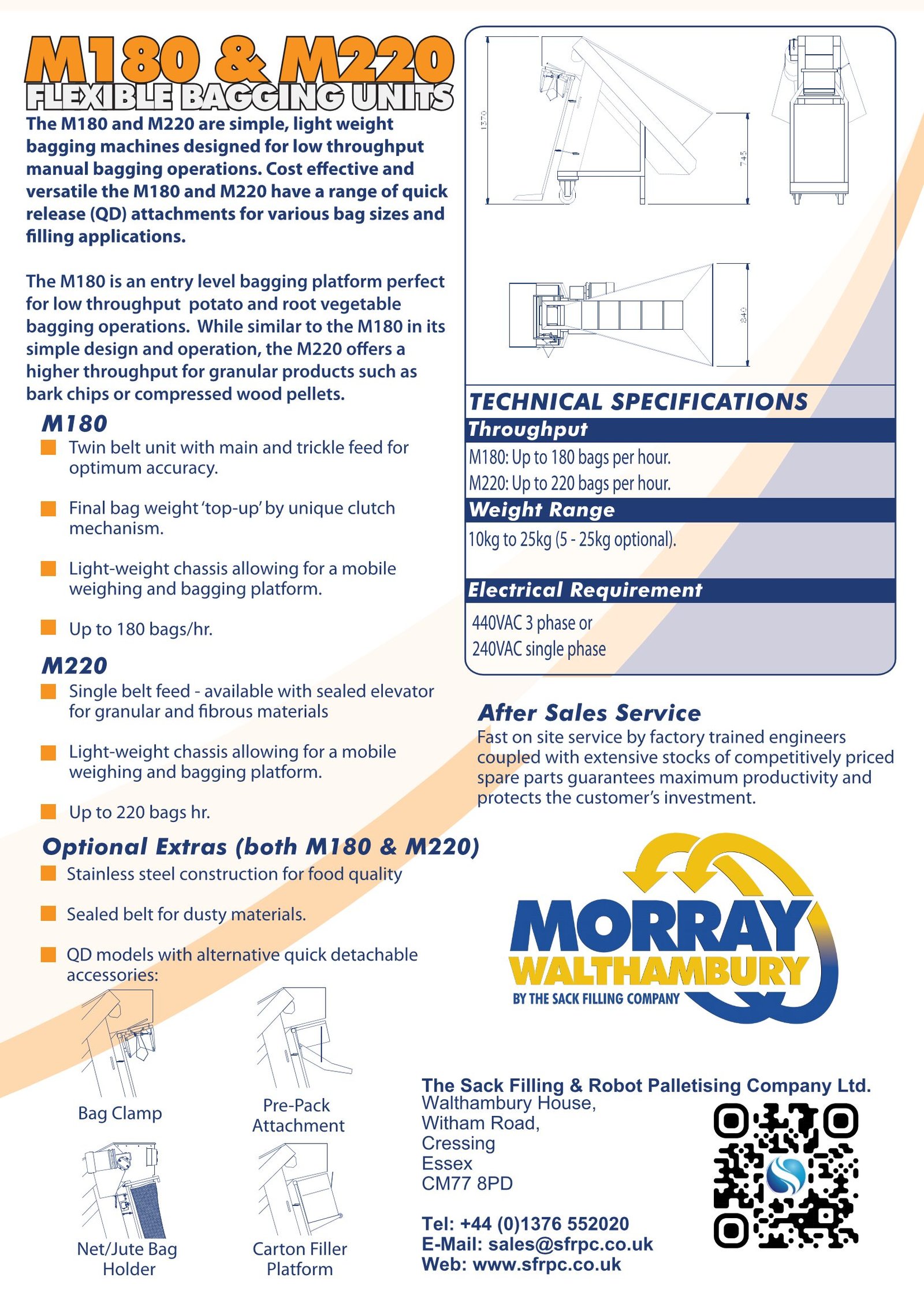 The M220 offers a higher throughput while retaining the simple design of its smaller brother the M180. Cost effective and versatile the M220 has a range of quick release attachments for various bag sizes and filling applications.